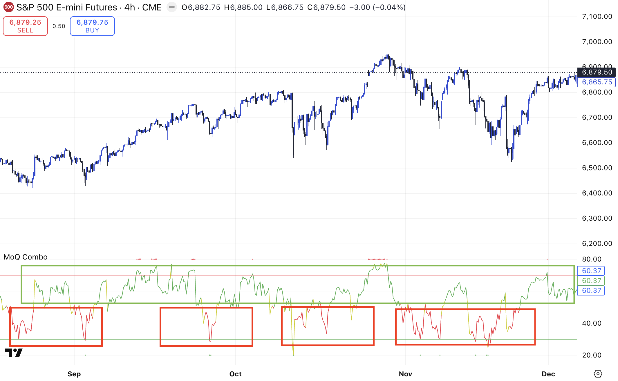 The MomentumQ Combo (MoQ Combo), including all visuals, alerts, divergence logic, regime classification, and momentum tools, is provided strictly for educational and informational purposes.It is not financial advice, investment advice, trading advice, or a guarantee of performance.All forms of trading and investing carry risk, including the risk of loss. Past performance is not indicative of future results.You are solely responsible for any decisions you make in the market. You should use proper risk management, and you may wish to consult a licensed financial professional before acting on any signal or interpretation from this tool.© MomentumQ. All rights reserved. Use and redistribution are subject to the Mozilla Public License 2.0.